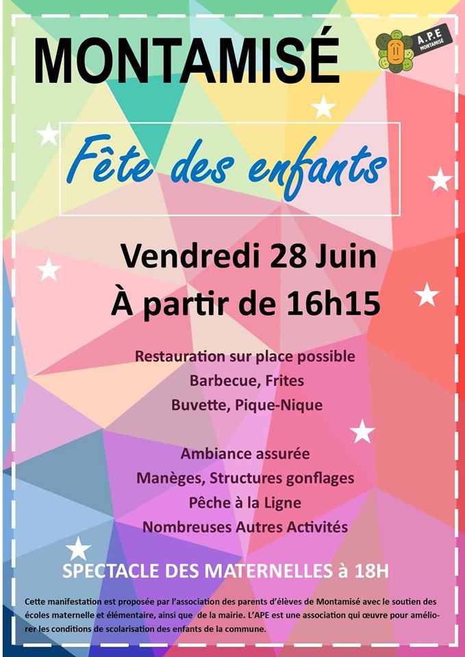 « Tous les Évènements Cet évènement est passé Fête des enfants- ANNULEE cause canicule 28 juin 2019 - 16 h 00 min : 23 h 30 min « Conférence- échange autour de l’activité physique chez les enfants et les adolescents fête de la rentrée » Venez nombreux à la traditionnelle fête des enfants! + Google Agenda+ Exporter vers iCal Détails Date : 28 juin 2019 Heure : 16 h 00 min : 23 h 30 min Lieu Stade municipal rue de l'école Montamisé, 86360 France + Google Map